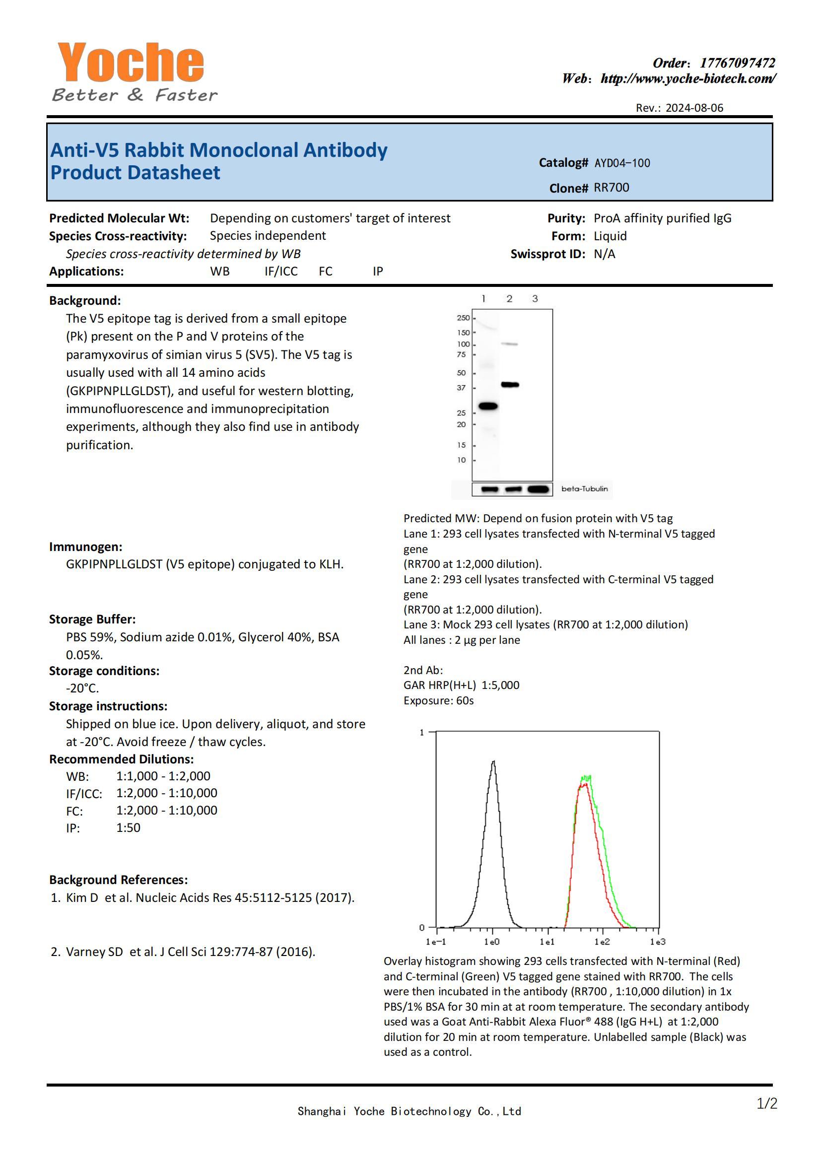 品名:Anti-V5 Rabbit Monoclonal Antibody