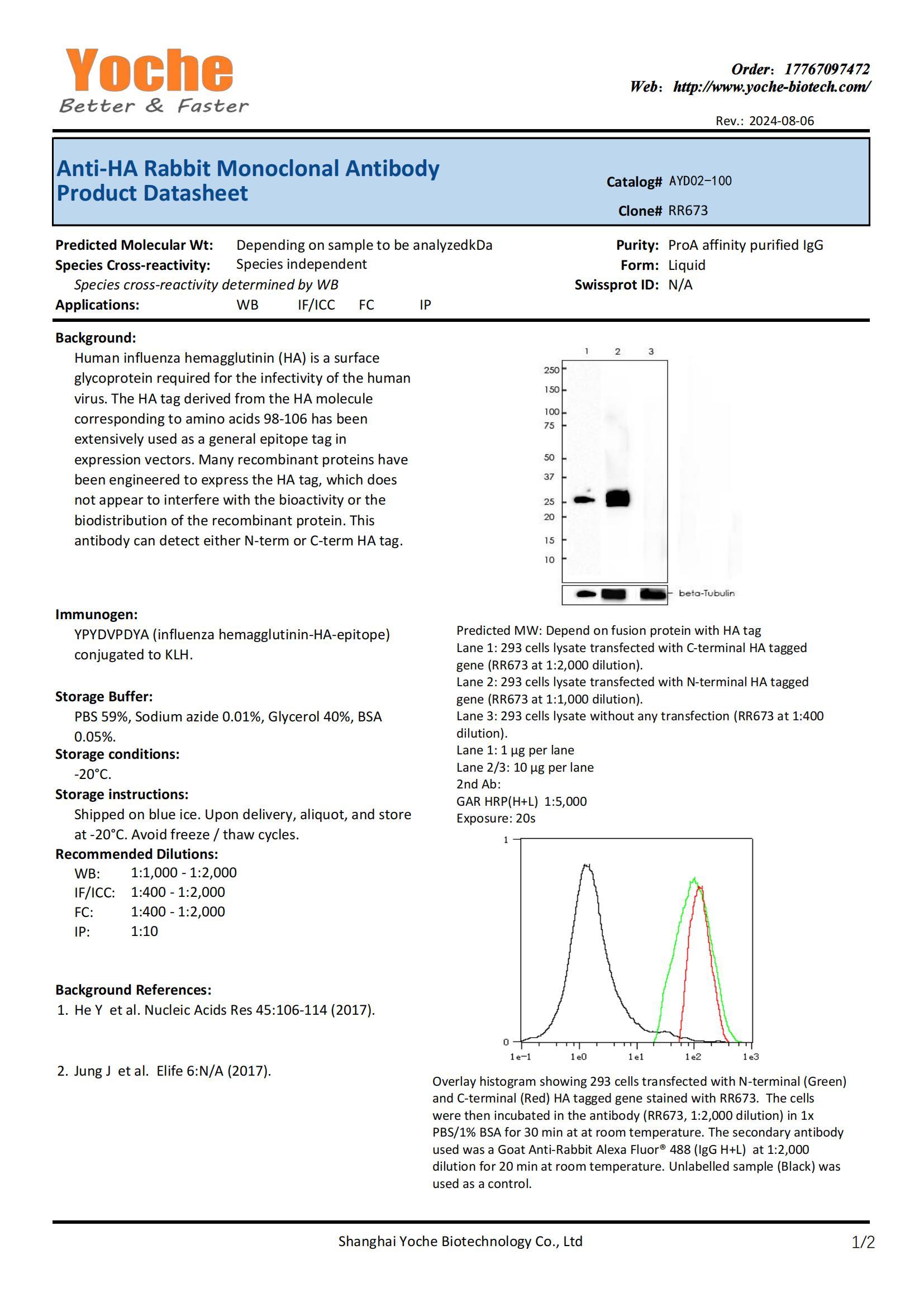 品名:Anti-HA Rabbit Monoclonal Antibody